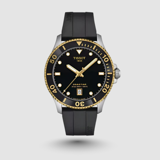 Tissot PR516 Chronograph Silver-Gold Chain with Black Dial Watch for Men-T149.417.22.051.00