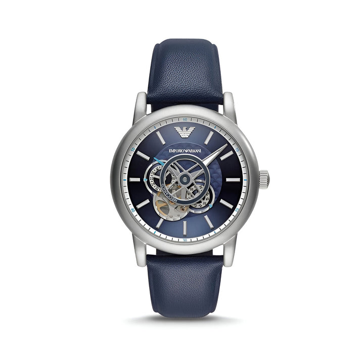 Emporio Armani Luigi Chronograph Blue Dial Black Leather Strap Watch For Men - AR60011