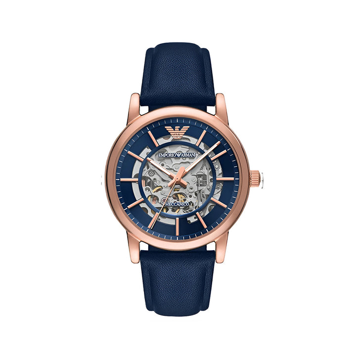 Emporio Armani Meccanico Automatic Blue Dial Blue Leather Strap Watch For Men - AR60050