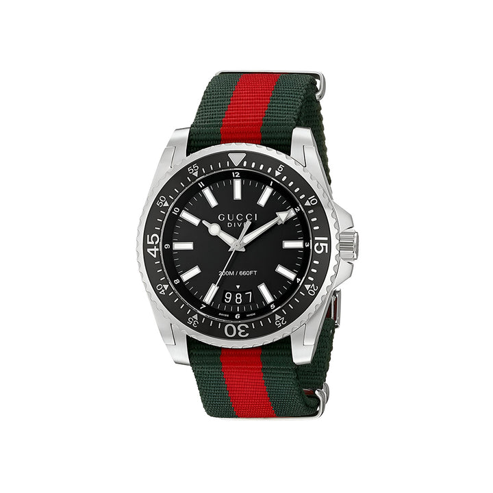 Gucci Dive YA136206 is an amazing and special Gents watch . Material of the case is Stainless Steel while the dial colour is Black. The features of the watch include (among others) a date function.