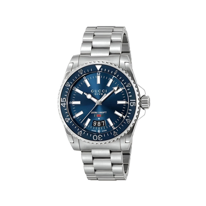 Gucci Dive Quartz Blue Dial Silver Steel Strap Watch For Men - YA136311