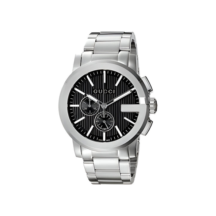 Gucci G Chrono Black Dial Silver Steel Strap Watch For Men - YA101204