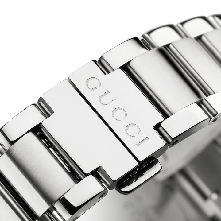 - With it's bold G-Shape Bezel,the time piece pays homage to one of Gucci's strongest motifs