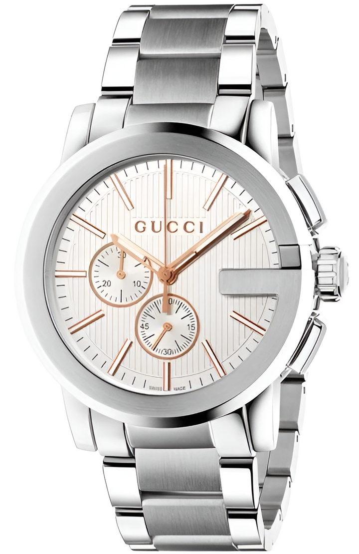 Gucci G Chrono Chronograph Silver Dial Silver Steel Strap Watch For Men - YA101201