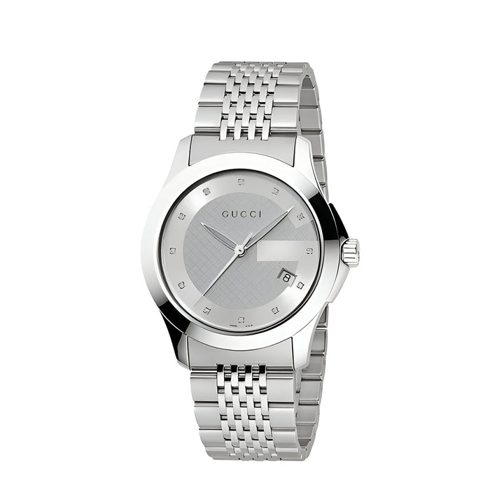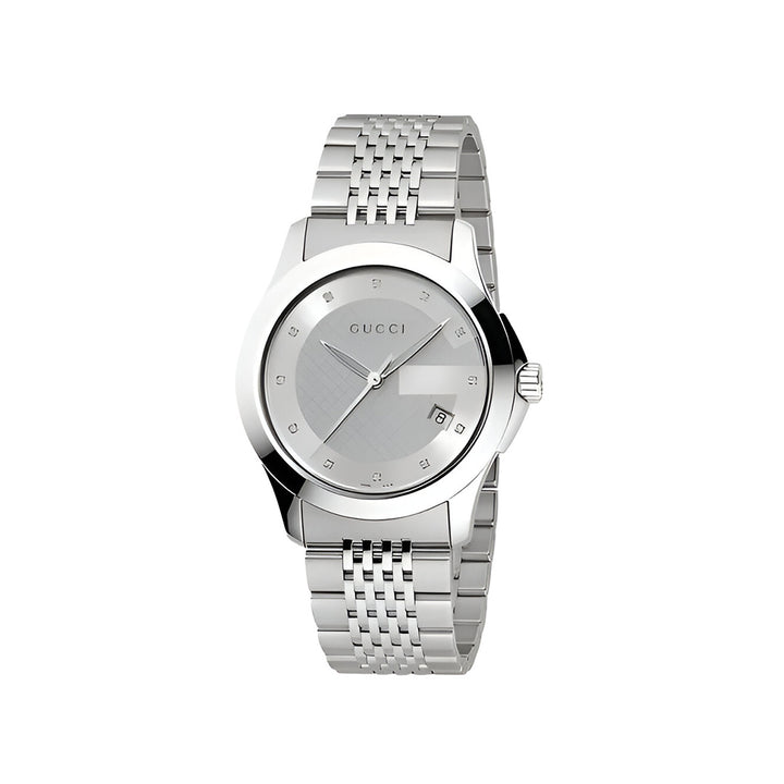 Gucci G Timeless Diamonds Silver Dial Silver Steel Strap Watch For Men - YA126404