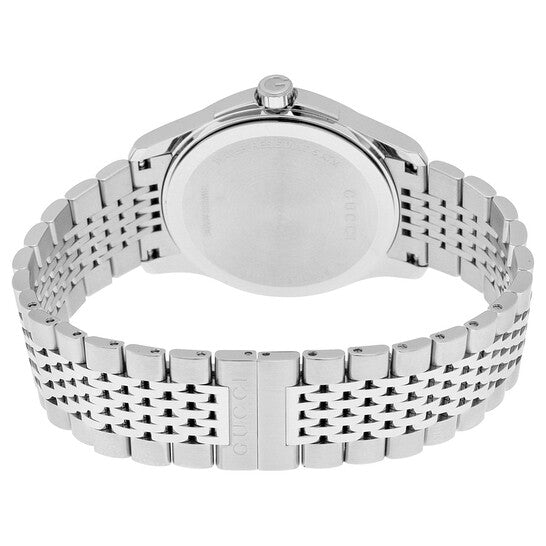 Scratch resistant sapphire crystal. Textured steel crown. Stainless steel case back. Case diameter: 38 mm. Deployment clasp. Water resistant at 30 meters / 100 feet. Gucci G Timeless Mens Stainless Steel Bracelet Watch YA126401.