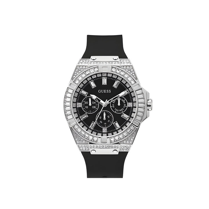 Guess Baguette Crystals Black Dial Black Silicone Strap Watch For Men - GW0208G1