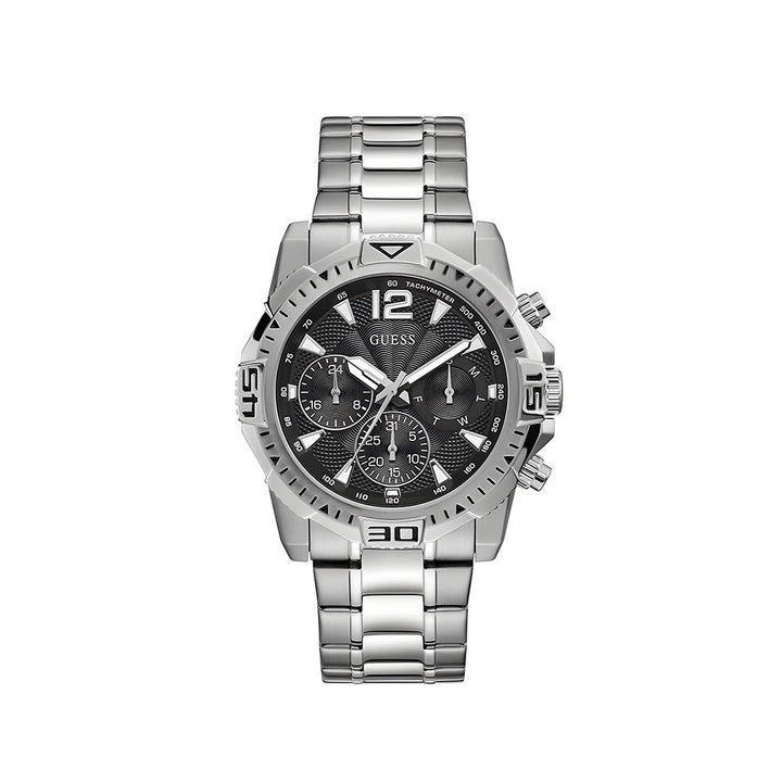 Guess Commander Chronograph Black Dial Silver Steel Strap Watch for Men - GW0056G1