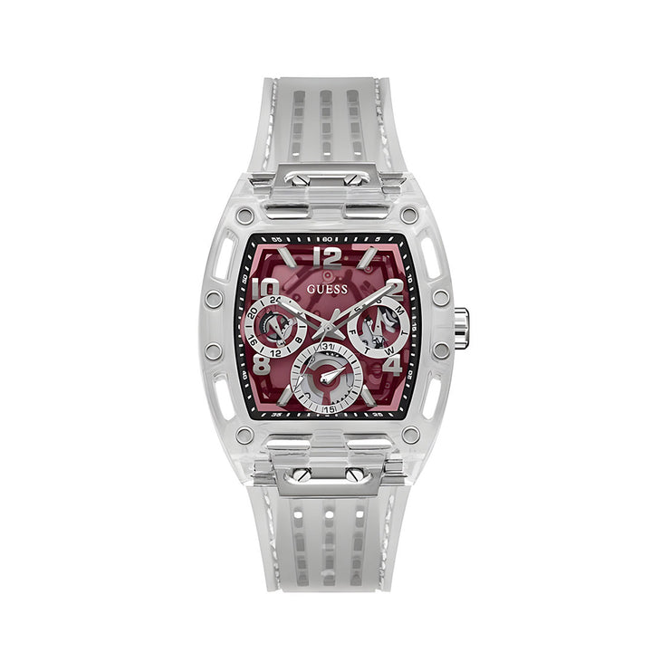 Guess Phoenix Quartz Burgundy Dial Transparent Silicone Strap Watch For Men - GW0499G9