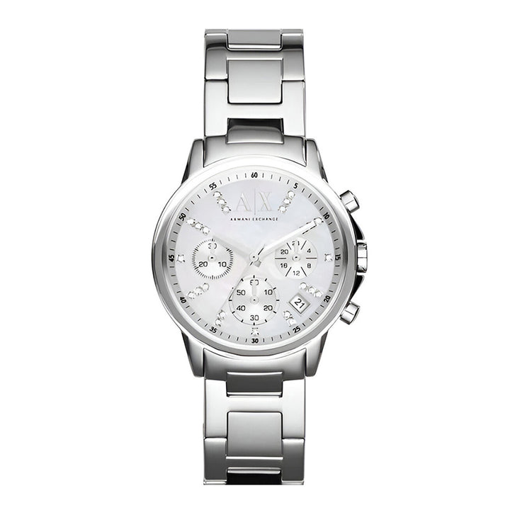 Armani Exchange Lady Banks Chronograph Silver Dial Metal Belt With Silver Color Watch For Women AX4324