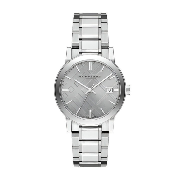 Crafted with precision and elegance, the Burberry The City BU9035 watch for women exudes sophistication. Its silver steel strap and dial complement each other, creating a sleek and timeless look. The silver dial features the iconic Burberry check pattern, adding a touch of luxury. Expertly designed, this watch is perfect for any occasion.
