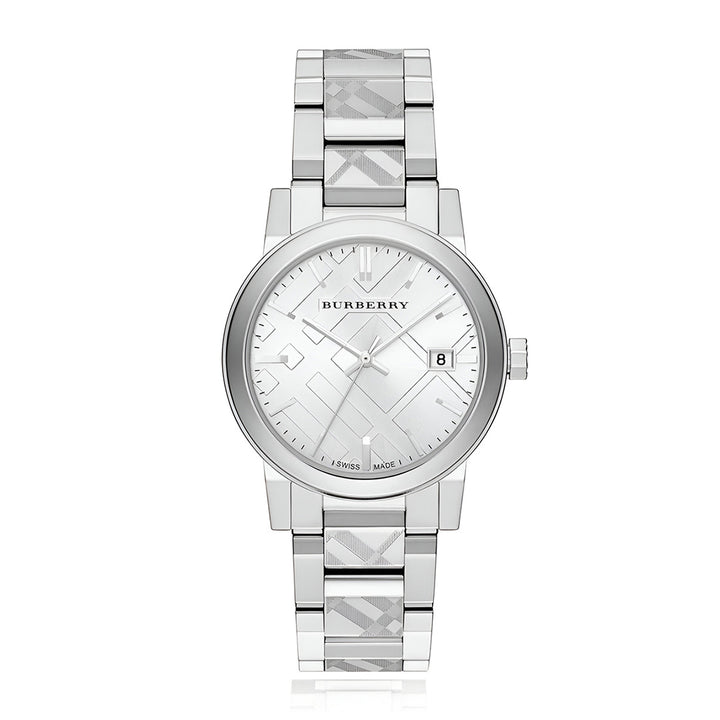 Burberry The City Engraved Check BU9037 is a functional and attractive Gents watch . Case material is Stainless Steel, which stands for a high quality of the item while the dial colour is Silver. The features of the watch include (among others) a date function. 50 metres water resistancy will protect the watch and allows it to be submerged in water for periods, so can be used for swimming and fishing. It is not reccomended for high impact water sports.