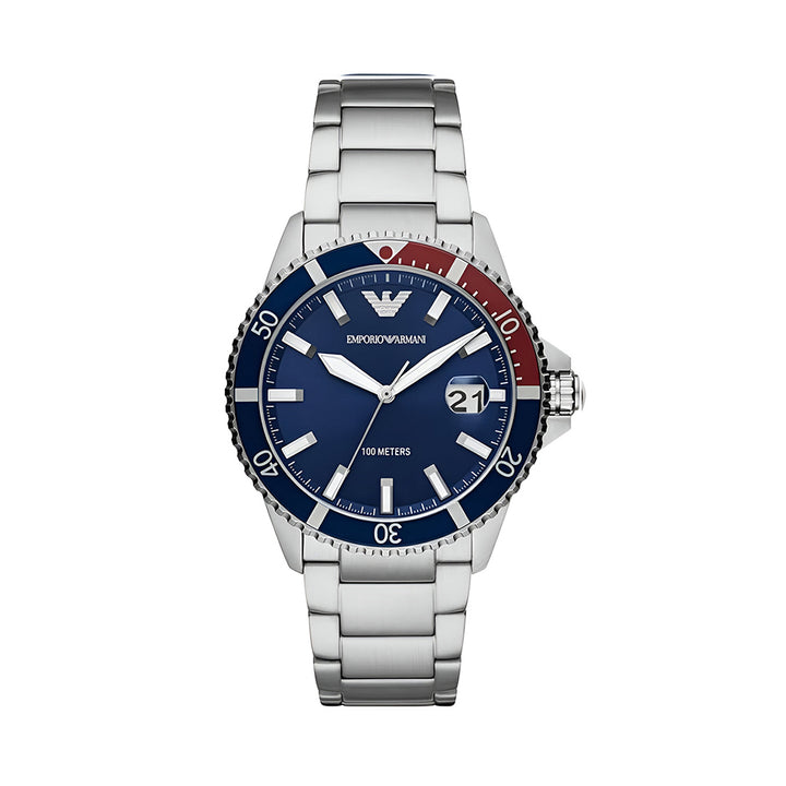 Emporio Armani Diver Quartz Blue Dial Silver Steel Strap Watch For Men - AR11339