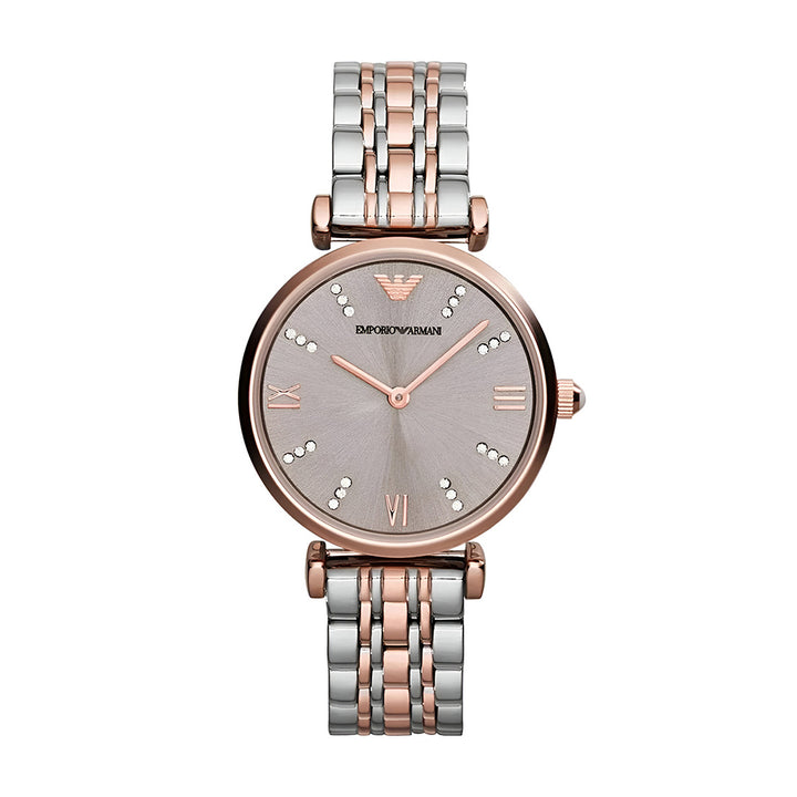Emporio Armani Gianni T Bar Grey Dial Two Tone Steel Strap Watch For Women - AR1840