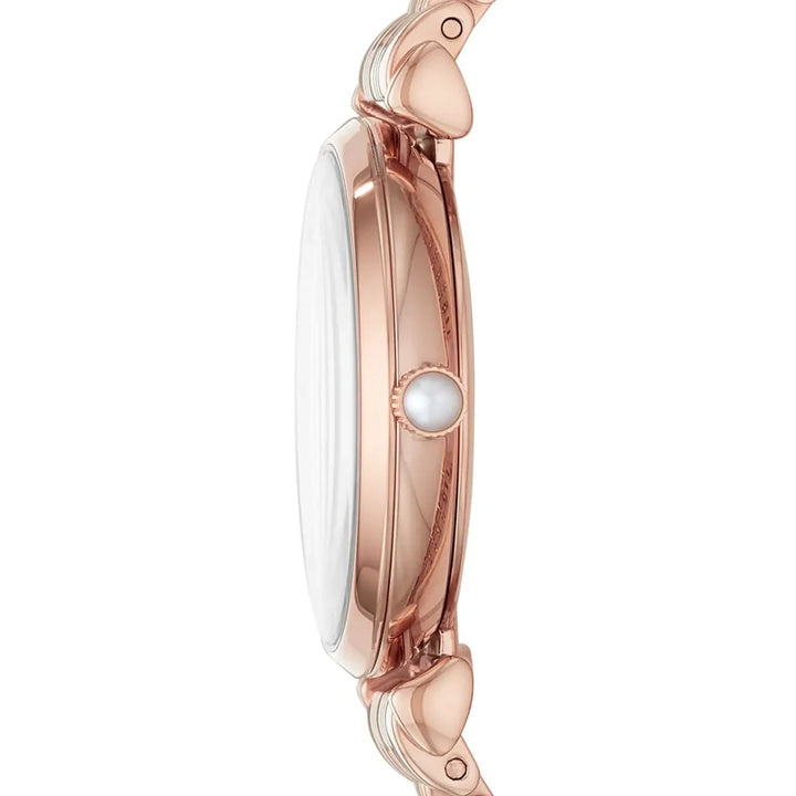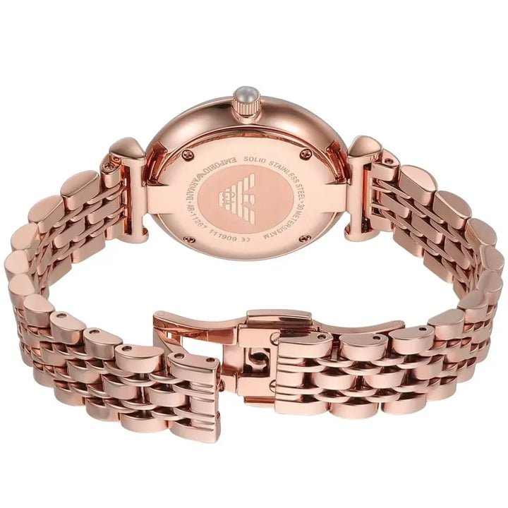 Emporio Armani Gianni T-Bar Quartz White Dial Rose Gold Steel Strap Watch For Women - AR11267
