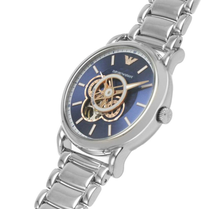 Emporio Armani Luigi Chronograph Skeleton Blue Dial Silver Steel Strap Watch For Men - AR60036