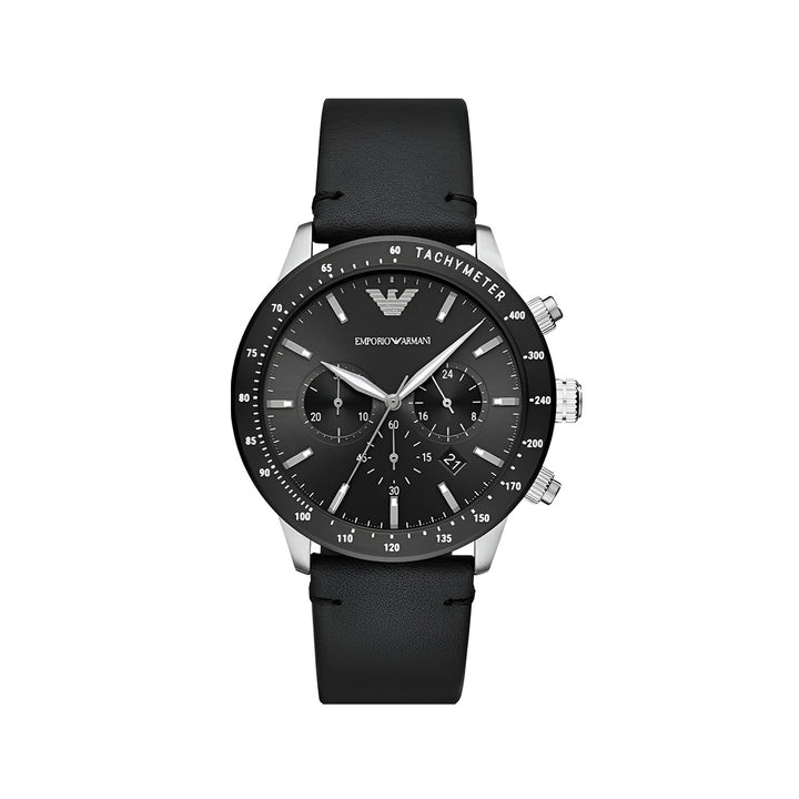 Emporio Armani Mario Chronograph Black Dial Black Leather Strap Watch For Men - AR11243