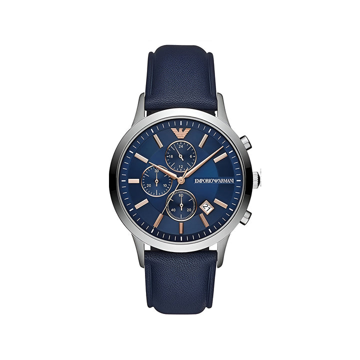 Emporio Armani Renato Chronograph Blue Dial Black Leather Strap Watch For Men - AR11216