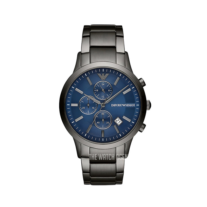 Emporio Armani Renato Chronograph Quartz Blue Dial Black Steel Strap Watch For Men - AR11215