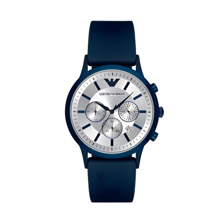 Emporio Armani Renato Chronograph Silver Dial Blue Silicone Strap Watch For Men - AR11026