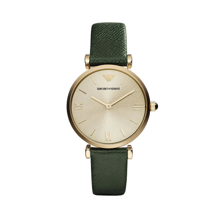 Emporio Armani Retro Champagne Beige Dial Green Leather Strap Watch For Women - AR1726