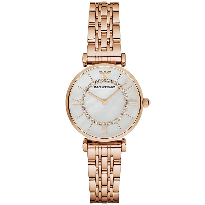 Emporio Armani T-Bar Gianni Crystal Pave Dial Rose Gold Steel Strap Watch For Women - AR11244