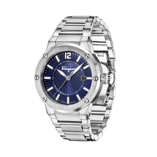 Ferragamo Men’s Swiss Made Quartz Rose Gold Stainless Steel Blue Dial 44mm Watch SFHY0292