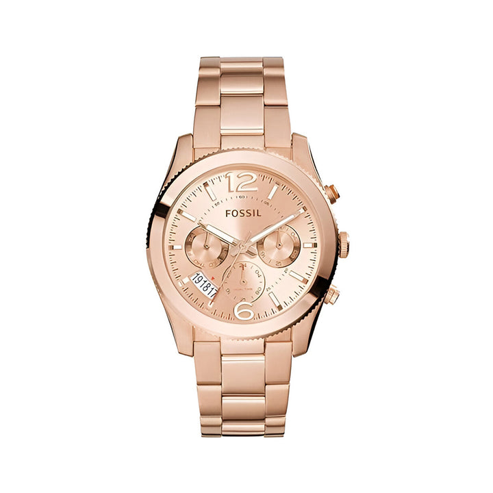 Fossil Boyfriend Multifunction Rose Gold Dial Rose Gold Steel Strap Watch for Women - ES3885