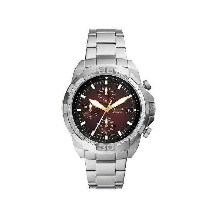 Fossil Bronson Chronograph Red Dial Silver Steel Strap Watch for Men - FS5878