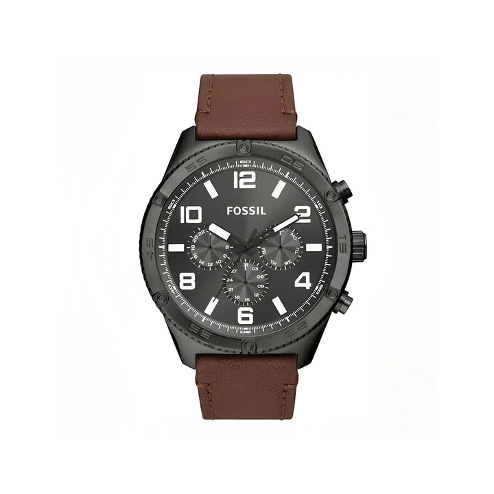 Fossil Brox Multifunction Grey Dial Brown Leather Strap Watch for Men - BQ2800