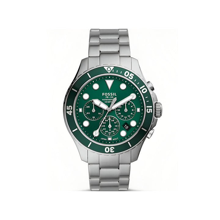Fossil FB-03 Chronograph Green Dial Silver Steel Strap Watch for Men - FS5726