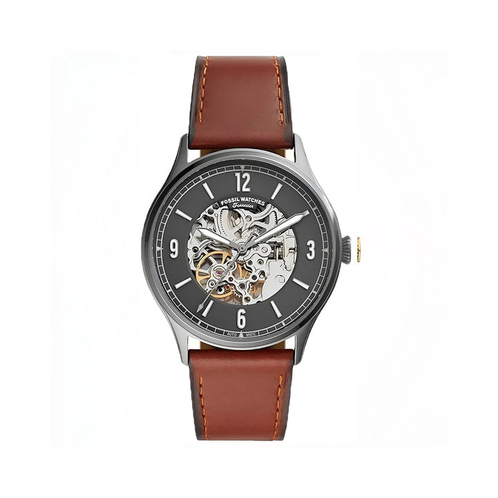 Fossil Forrester Automatic Skeleton Grey Dial Brown Leather Strap Watch for Men - ME3178