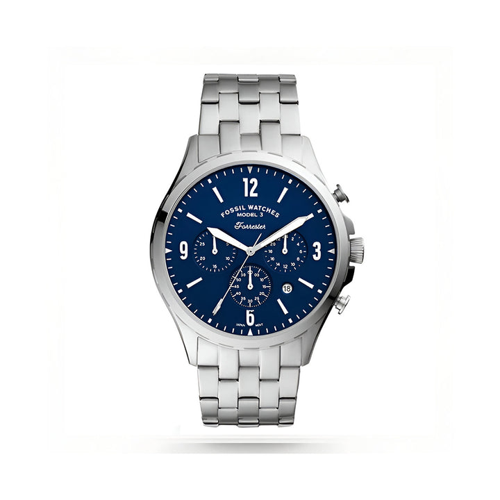 Fossil Forrester Chronograph Blue Dial Silver Steel Strap Watch for Men - FS5605