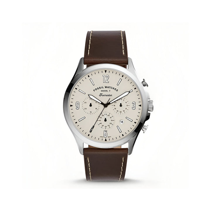 Fossil Forrester Chronograph White Dial Brown Leather Strap Watch for Men - FS5696