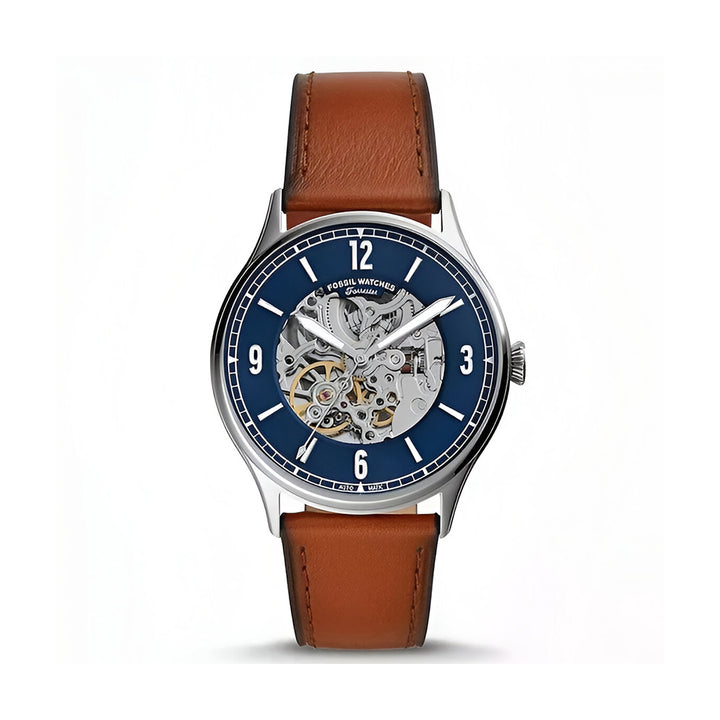 Fossil Forrester Luggage Automatic Skeleton Blue Strap Watch for Men - ME3179