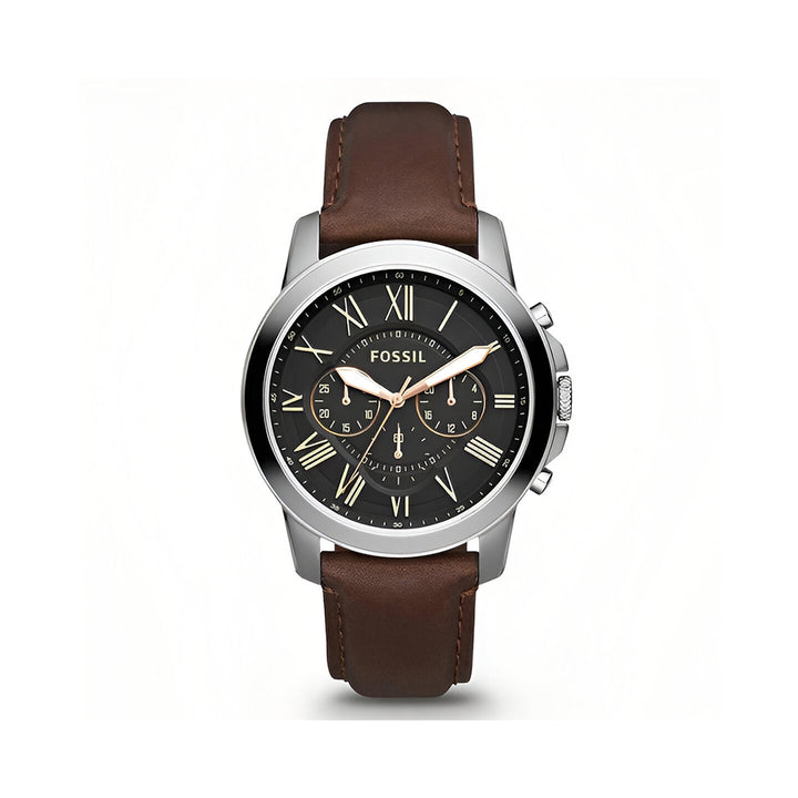 Fossil Grant Chronograph Black Dial Brown Leather Strap Watch for Men - FS4813