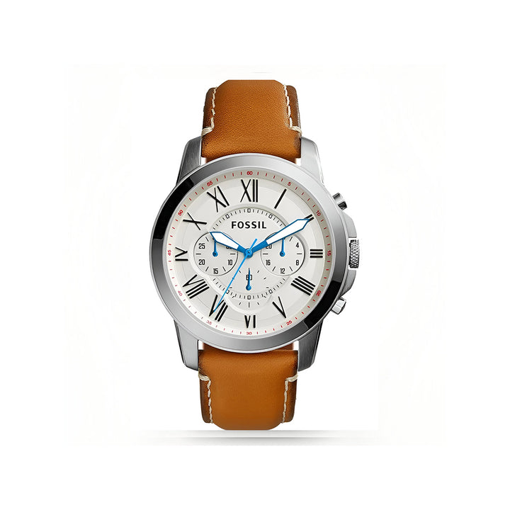 Fossil FS-5060 Grant Leather Strap Men’s Watch. The case is made out of Silver Stainless Steel with a Silver Bezel, which stands for the high quality of the item, it has White Dial. This model has got 50 meters of water resistance. it can be worn in scenarios where it is likely to be splashed but not immersed in water and will be fine in rain. The watch is shipped with an original box and a guarantee from the manufacturer.