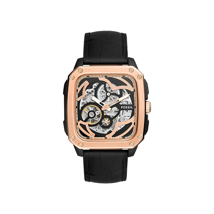Fossil Inscription Automatic Skeleton Rose Gold Dial Strap Watch for Men - BQ2572