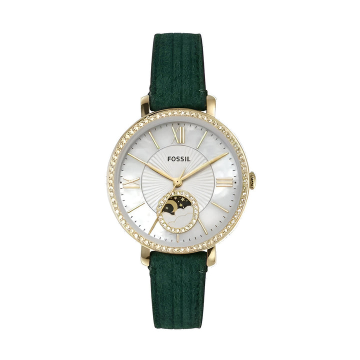 Fossil Jacqueline Multifunction Moonphase White Dial Green Strap Watch for Women - ES5244