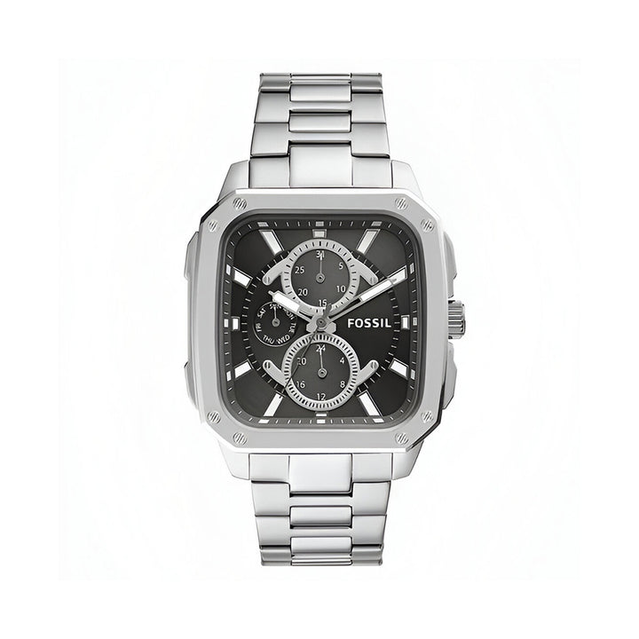 Fossil Inscription Multifunction Black Dial Silver Steel Strap Watch for Men - BQ2655