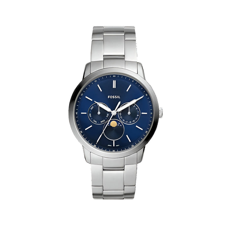 Fossil Neutra Minimalist Moonphase Blue Dial Silver Steel Strap Watch for Men - FS5907
