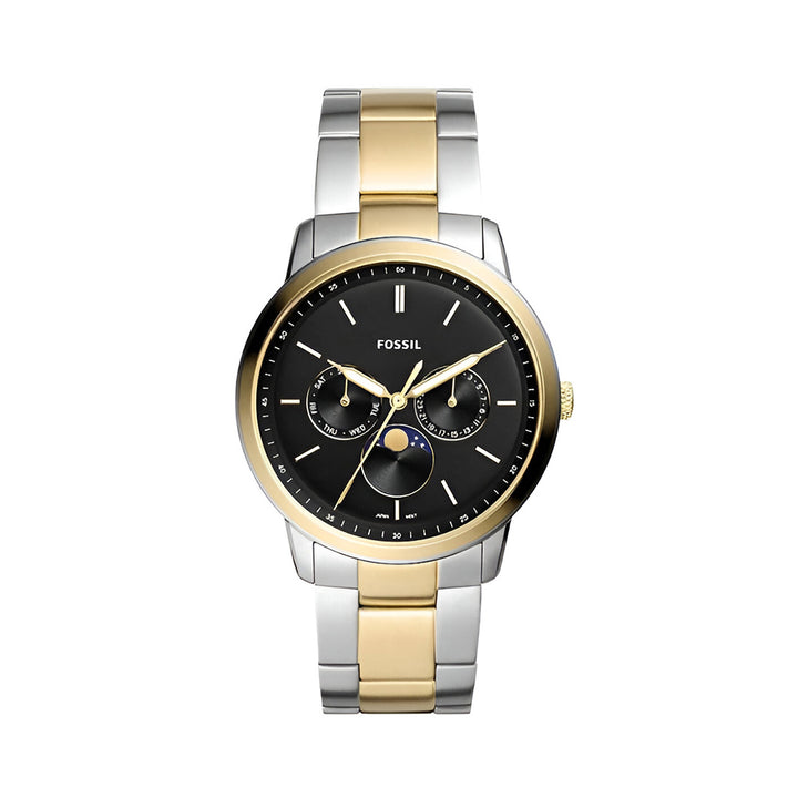 Fossil Neutra Moonphase Multifunction Black Dial Two Tone Steel Strap Watch for Men - FS5906
