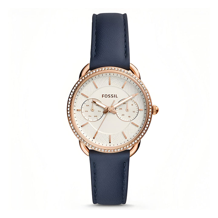 Fossil Tailor White Dial Blue Leather Strap Watch for Women - ES4394