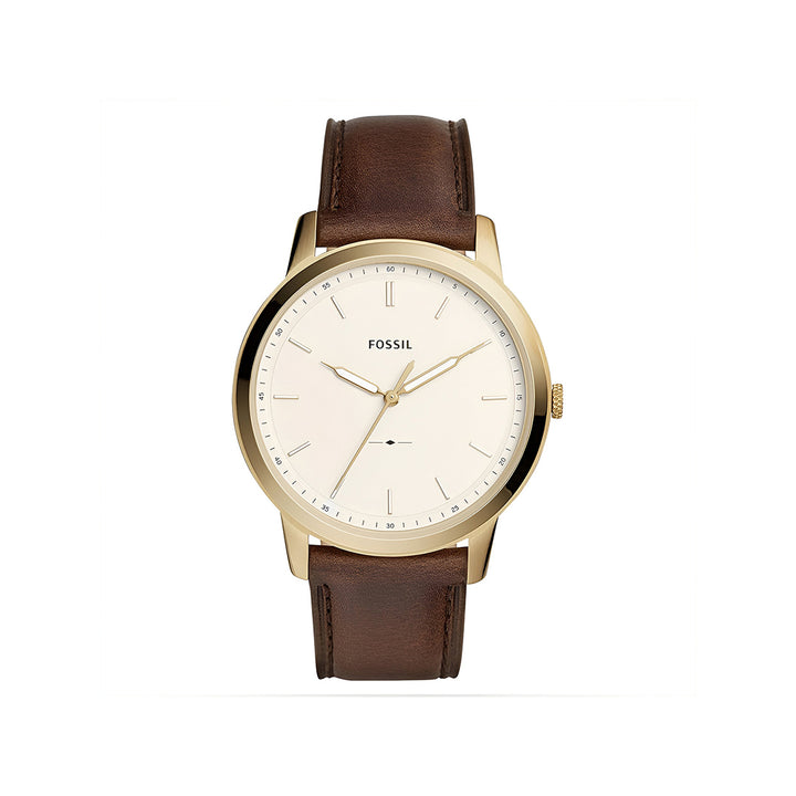 Define your suave personality by wearing this men’s analog watch from Fossil’s The Minimalist collection. Nestled in a 44 mm case, the cream round dial exhibits plain three hands, stick markings at five-minute intervals and a crown for time adjustment. The genuine leather strap comes in a brown hue that further elevates its look. This water-resistant watch can be teamed with a white shirt to look handsome.