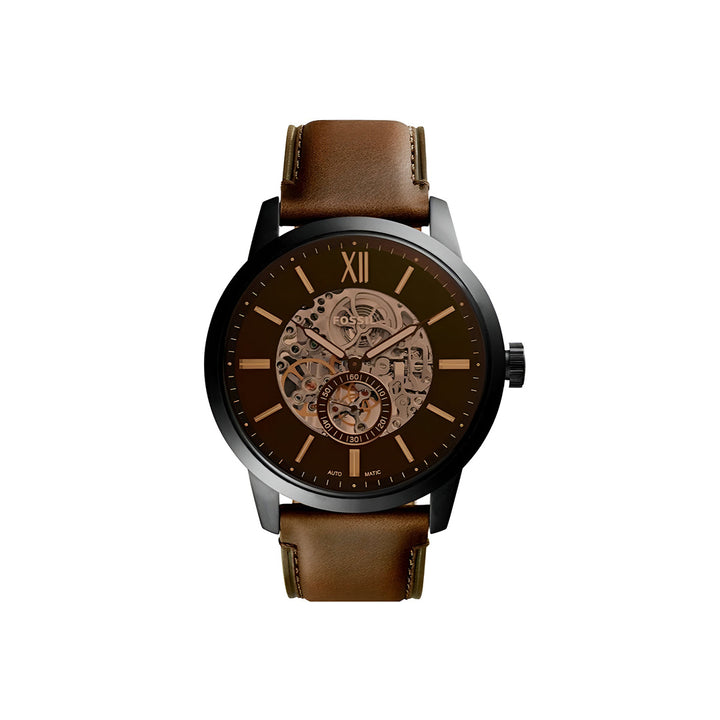 Fossil Townsman Automatic Black Dial Brown Leather Strap Watch for Men - ME3155