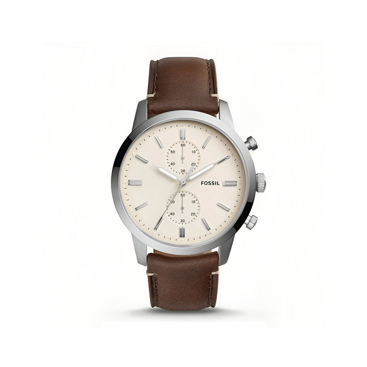 Fossil Townsman Chronograph White Dial Brown Leather Strap Watch for Men - FS5350
