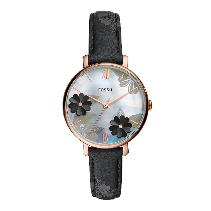 Fossil Jacqueline Mother of Pearl Dial Black Leather Strap Watch for Women - ES4535