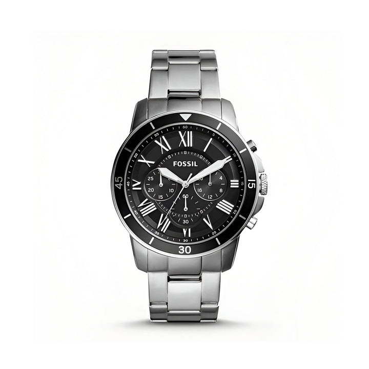 Fossil Grant Sport Chronograph Black Dial Silver Steel Strap Watch for Men - FS5236