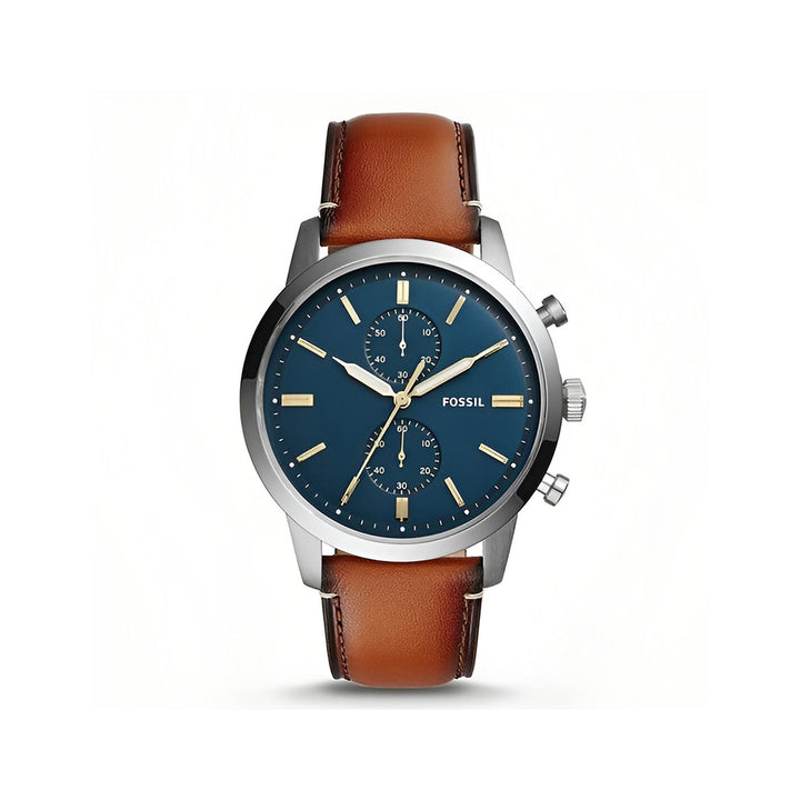 Fossil Townsman Chronograph Blue Dial Brown Leather Strap Watch for Men - FS5279