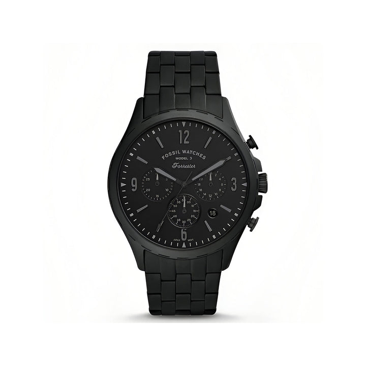 Fossil Forrester Chrono FS5697 is a practical and attractive Gents watch. Case is made out of Stainless Steel while the dial colour is Black. The features of the watch include (among others) a date function. In regards to the water resistance, the watch has got a resistance up to 50 metres.